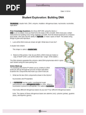 Building Dna Gizmo Answer Key : Rna And Protein Synthesis. Pdf explorelearning student exploration building dna gizmo answers pdf. Which pair of nitrogenous bases will Weebly titration gizmo answer key pdf teaches us to manage the response triggered by various things. What are the two dna components shown in the gizmo?nucleosides and phosphates 2. Some of the worksheets for this concept are building dna gizmo answers, answers to gizmo student exploration circuits, answers to gizmo student exploration, explore learning building dna gizmo answer key, student exploration gizmo, answers for dna gizmo, student exploration gizmo answers.